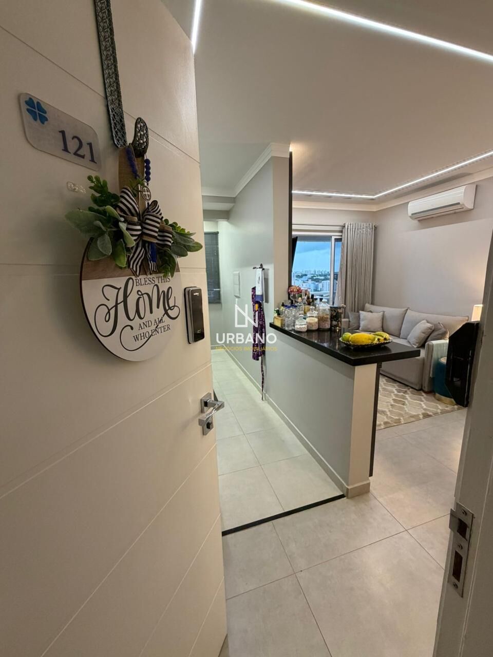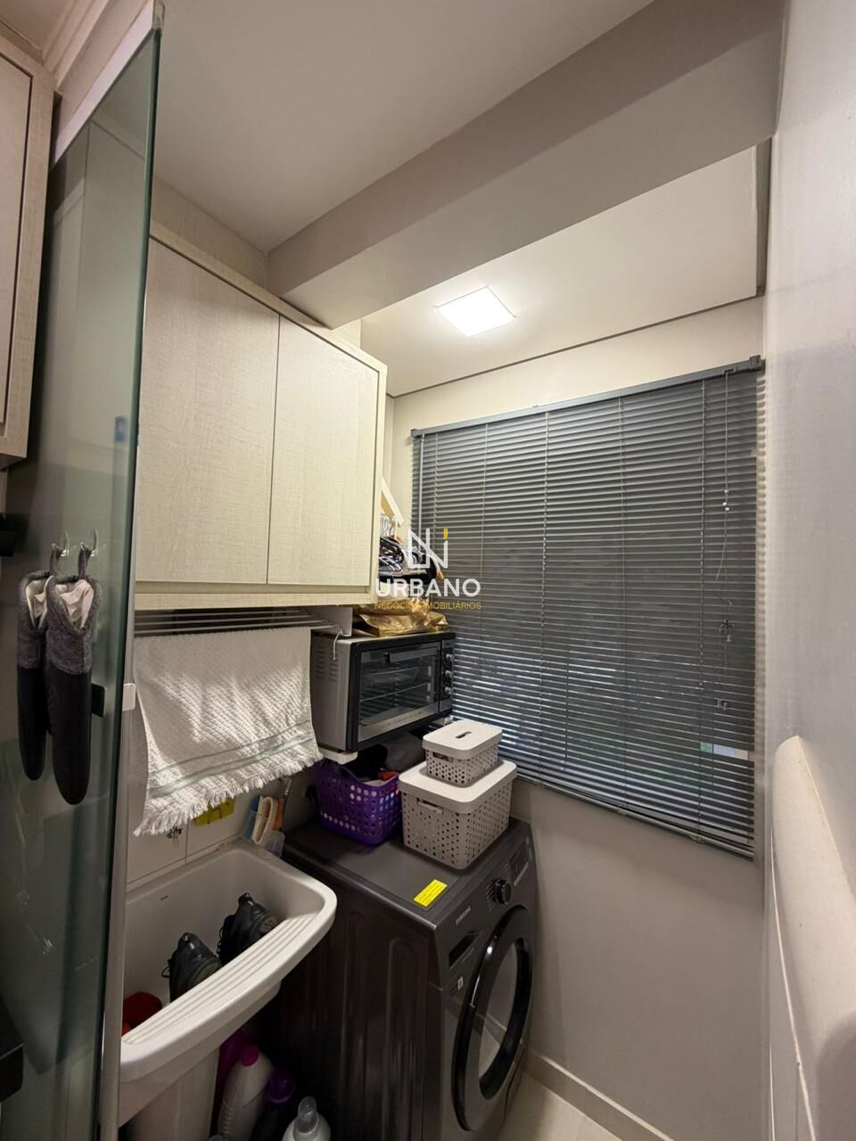 O imóvel dispõe de 43m² de área útil, cuidadosamente planejados para oferecer conforto e praticidade. A cozinha está equipada com cooktop, geladeira e micro-ondas, enquanto a sala de estar, ideal para dois ambientes, inclui um painel até o teto, TV, sofá e uma sacada convidativa. O dormitório é mobiliado com cama e cortinas, garantindo privacidade e comodidade. O apartamento conta ainda com um banheiro bem distribuído e uma lavanderia equipada com máquina de lavar roupas.